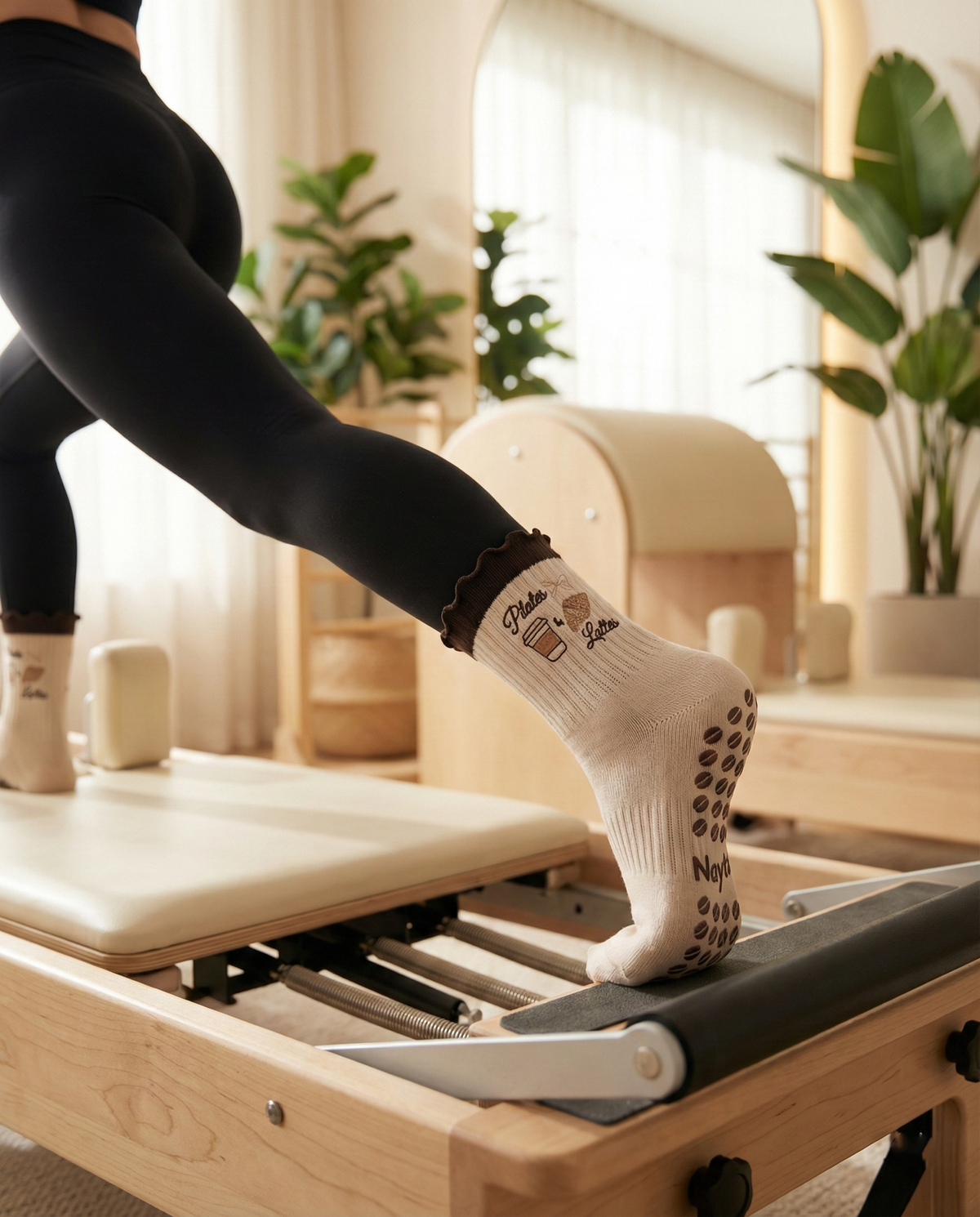 Vores signatur-grip er fremstillet af silikone med høj densitet, placeret strategisk for at give maksimal stabilitet på både måtter og vinyl-overflader (som Allegro eller Peak Reformers). Det giver dig selvtillid til at fokusere 100% på din form og dit flow.